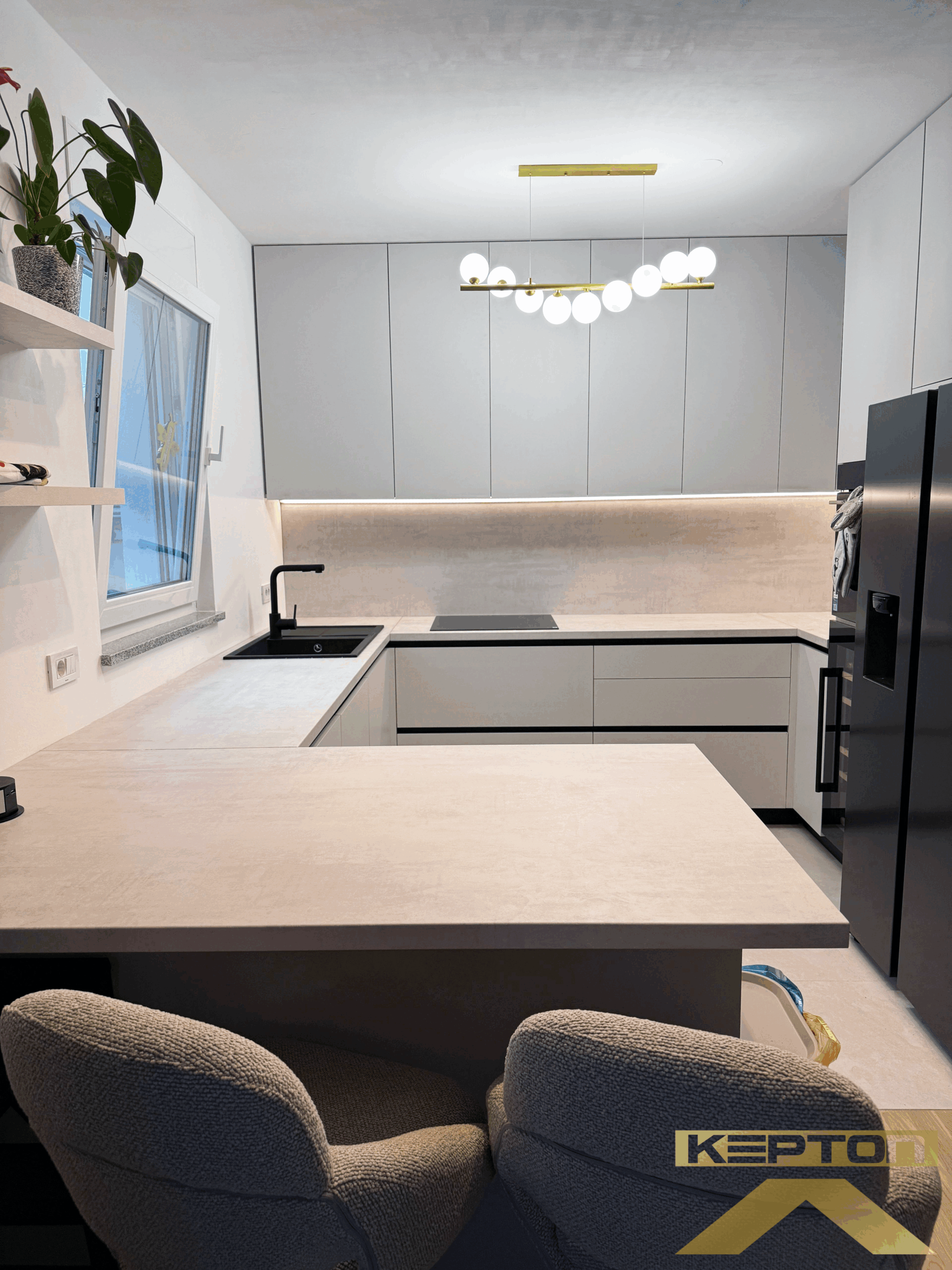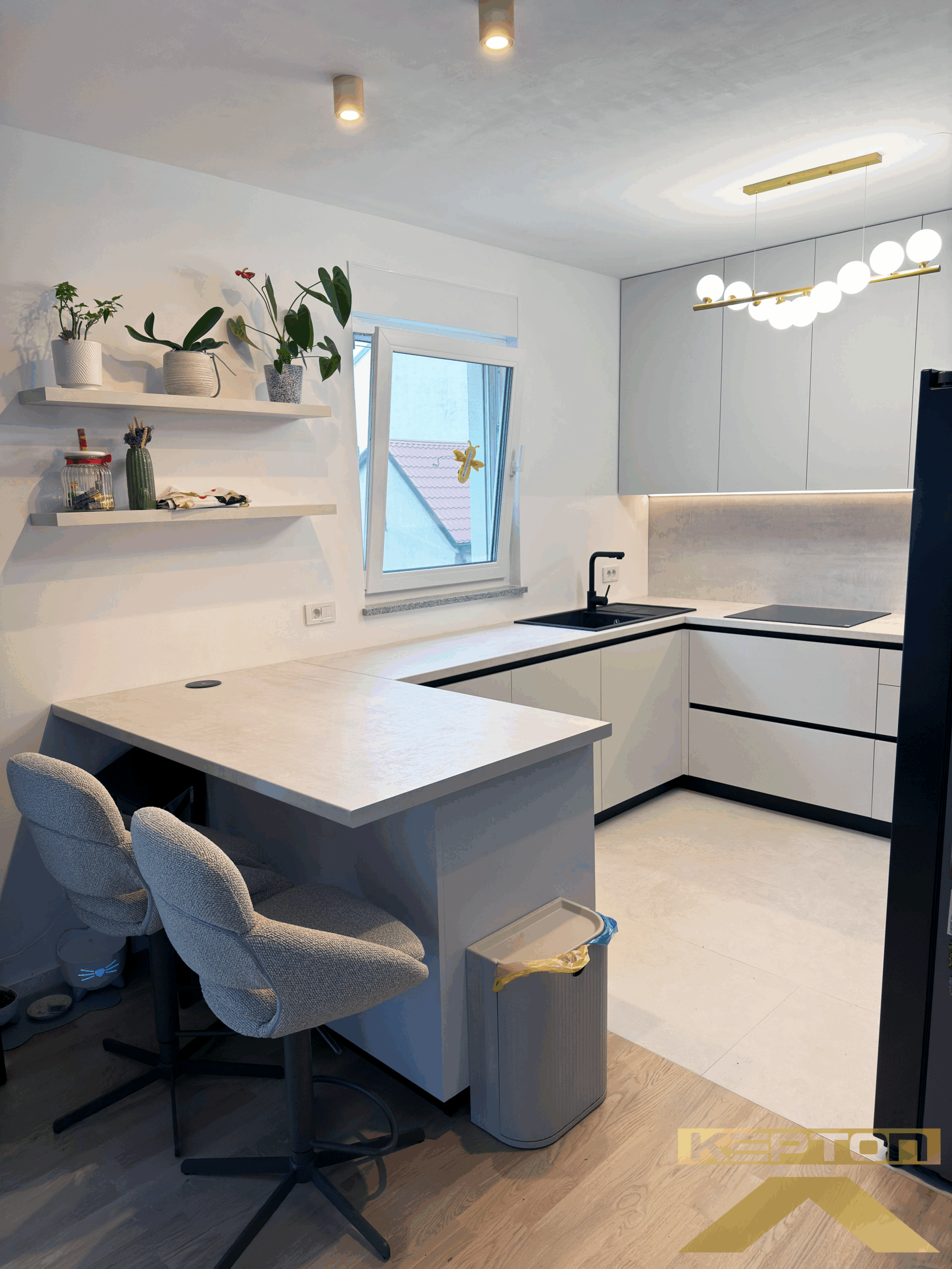 Kuhinja Luma odiše svježinom, svjetlom i jednostavnošću. Svijetle nijanse i čiste linije stvaraju prozračan prostor u kojem se lako osjećati ugodno i opušteno. Detalji poput viseće rasvjete u zlatnim tonovima i crnih dodataka daju prostoru elegantan kontrast i dozu profinjenosti je spoj funkcionalnosti i topline kuhinja u kojoj svaki detalj ima svrhu, a svaki trenutak postaje ugodniji.